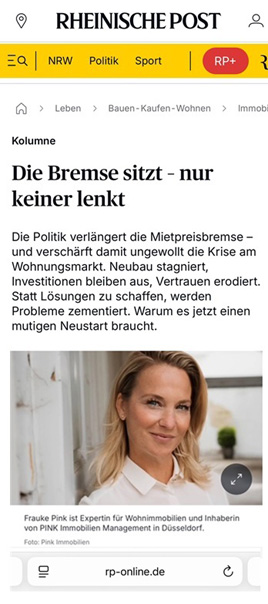 In meiner aktuellen Kolumne in der Rheinischen Post geht es um ein Thema, das den Wohnungsmarkt prägt und doch oft am Kern vorbeigeht: die Mietpreisbremse.