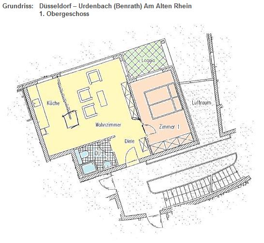 Im beliebten Klemensviertel in Kaiserswerth am Rhein befindet sich die 2-Zimmer-Wohnung im 1. Obergeschoss eines gepflegten Mehrfamilienhauses.