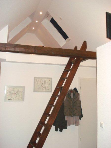 Ebenso besticht die Wohnung durch die vielen Veluxfenster, welche mit Beschattung und Verdunkelungsmöglichkeit ausgestattet sind, und die moderne Niedervoltbeleuchtung.