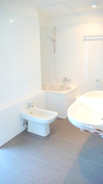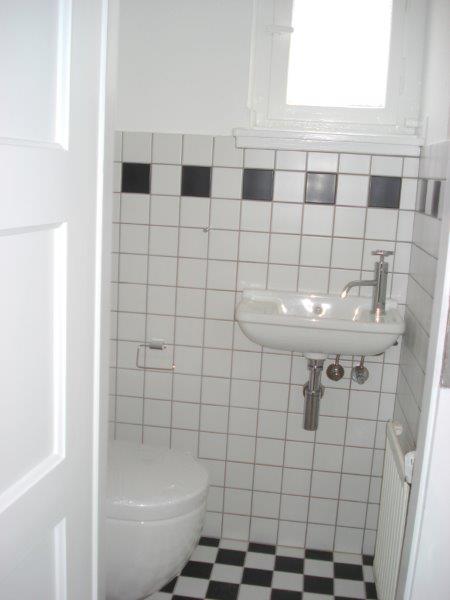Das neue Badezimmer und Gäste-WC wurde von dem Architekt des Hauses stilecht mit schwarz-weißen Fließen und hochwertiger Villory & Boch-Keramik ausgestattet.