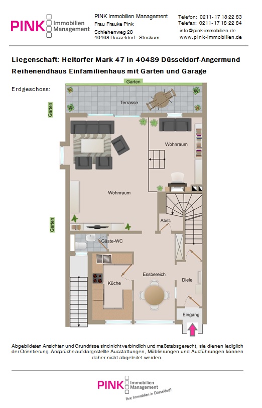 Alle Angaben in unseren Exposés wurden nach bestem Wissen und Gewissen anhand der uns vom Eigentümer bzw. Auskunftsbefugten genannten Angaben bzw. übergebenen Unterlagen erstellt und spiegelt nur unsere Meinung wieder. Wir sind stets um Vollständigkeit, Richtigkeit sowie Aktualität der Inhalte bemüht, übernehmen dennoch keine Gewähr dafür. Auch für späteren Schadenersatzansprüchen sowie Streitigkeiten, die aus dem Mietverhältnis entstehen, sowie daraus resultierenden Ansprüchen, können wir keinerlei Haftung übernehmen. Zwischenvermietung wie Änderungen vorbehalten. Die Exposés dienen als Information. Als Rechtsgrundlage gilt allein der abgeschlossene Mietvertrag. Die Texte sind urheberrechtlich geschützt. Eine Verwendung für den eigenen Bedarf, Verkauf oder Weitergabe an Dritte sind nicht erlaubt. Die Weitergabe dieses Angebotes an Dritte ist ohne unsere ausdrückliche Genehmigung nicht erlaubt. Bei Zuwiderhandlung haften Sie für die uns entgangene Provisions-- bzw. Schadensansprüche. Abgebildeten Ansichten und Grundrisse sind nicht verbindlich und maßstabsgerecht, sie dienen lediglich der Orientierung. Ansprüche auf bestimmte Ausstattungen, Möblierungen und Ausführungen können daher nicht abgeleitet werden.